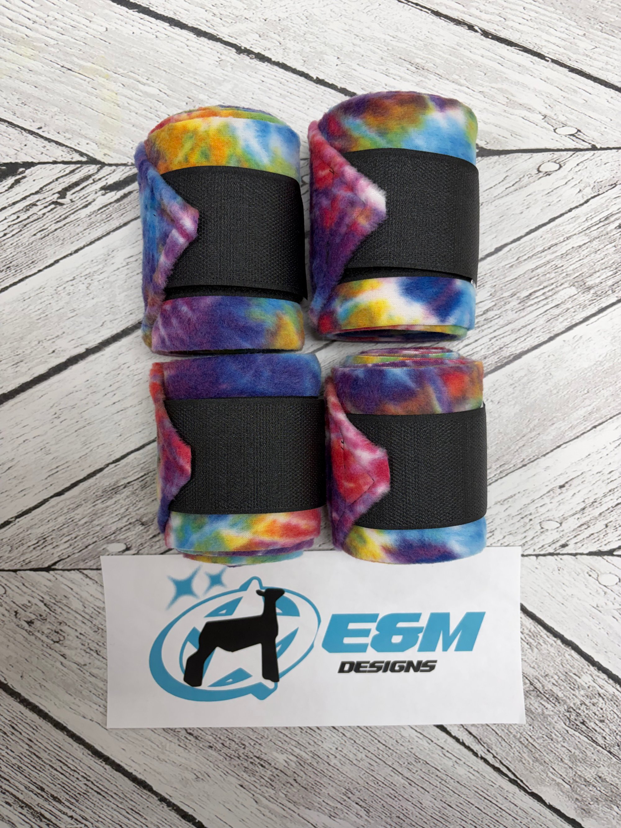 Protect your lambs leg wool with our fun print leg wraps! We have a unique product- The back leg wraps are a bit wider than the front leg wraps to help with coverage and ease of wrapping!