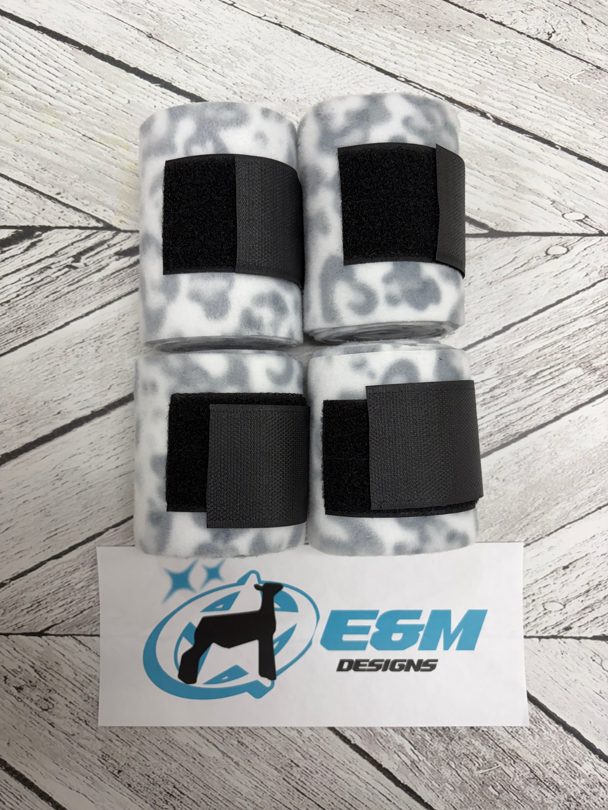 Protect your lambs leg wool with our fun print leg wraps! We have a unique product- The back leg wraps are a bit wider than the front leg wraps to help with coverage and ease of wrapping!